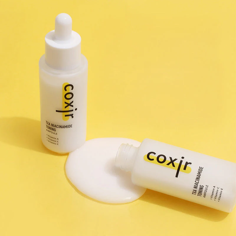 A Coxir Niacinamide Toning Ampoule é uma essência iluminadora e hidratante formulada para uniformizar o tom da pele e aumentar o brilho. Combina 5.000 ppm de ácido tranexâmico, niacinamida e vitamina C para tratar a hiperpigmentação, o tom baço e o tom irregular da pele. Antioxidantes adicionais, como vitamina E e retinol, ajudam a refinar a textura da pele e apoiam os benefícios antienvelhecimento.